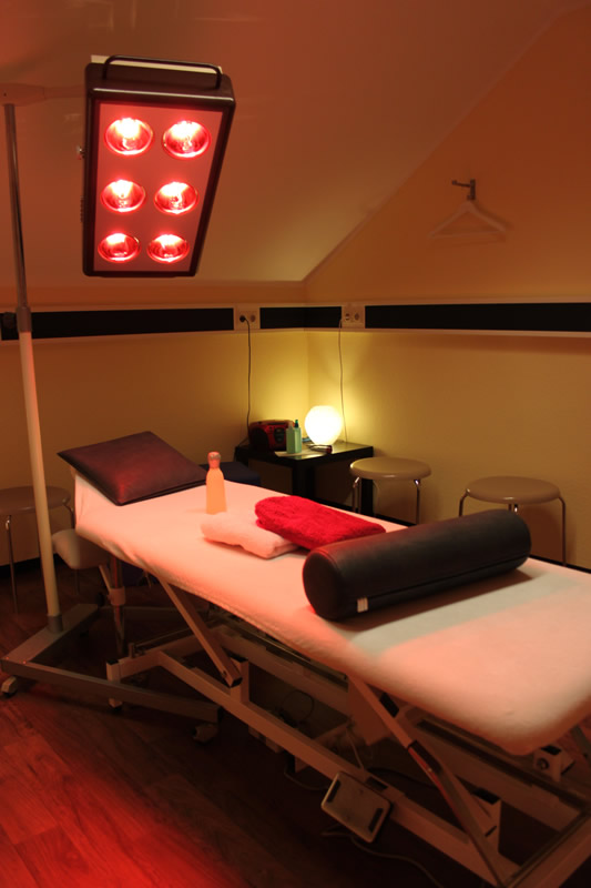 Die Bestrahlung mit Rotlicht, die Behandlung mit Fango oder Naturmoorpackungen.